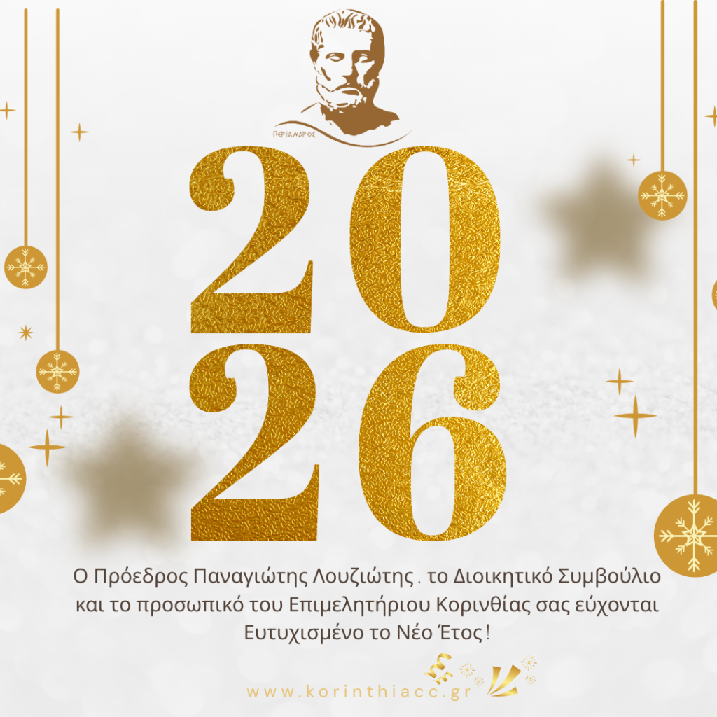 Ο Πρόεδρος κ. Παναγιώτης Λουζιώτης, το Διοικητικό Συμβούλιο και το προσωπικό του Επιμελητηρίου Κορινθίας εύχονται σε όλες και όλους Καλή και Δημιουργική Χρονιά, με υγεία, προσωπική και επαγγελματική ευημερία.