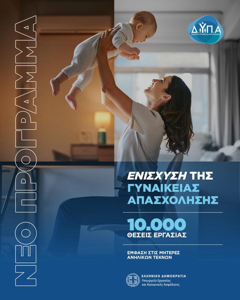 Το πρόγραμμα αφορά στην επιχορήγηση επιχειρήσεων για την πρόσληψη 10.000 ανέργων γυναικών ηλικίας 18 ετών και άνω, με έμφαση σε μητέρες ανήλικων τέκνων ηλικίας έως 15 ετών. Στο πλαίσιο του προγράμματος θα δημιουργηθούν 5.000 νέες θέσεις εργασίας πλήρους απασχόλησης και 5.000 νέες θέσεις εργασίας μερικής απασχόλησης. Δικαιούχοι του προγράμματος είναι ιδιωτικές επιχειρήσεις και εργοδότες οι οποίοι ασκούν τακτική οικονομική δραστηριότητα. Το Πρόγραμμα συνολικού προϋπολογισμού 101.813.625 ευρώ χρηματοδοτείται από πόρους της ΔΥΠΑ με σκοπό την ενίσχυση της γυναικείας απασχόλησης και την εναρμόνιση οικογενειακής και επαγγελματικής ζωής.