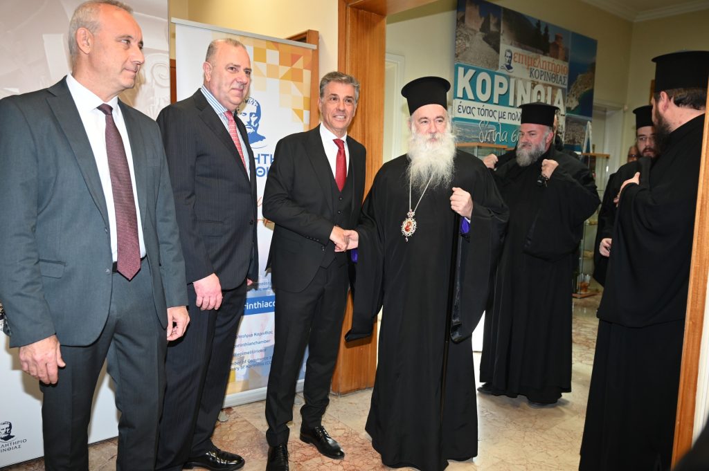 Την ευλογία της αγιοβασιλόπιτας τέλεσε ο νέος Μητροπολίτης Κορίνθου, Σεβασμιώτατος κ.κ. Παύλος, ο οποίος ήταν και ο επίτιμος καλεσμένος της εκδήλωσης, απευθύνοντας εγκάρδιες ευχές για μια δημιουργική, ειρηνική και ευλογημένη χρονιά για την Κορινθία και τον επιχειρηματικό κόσμο.