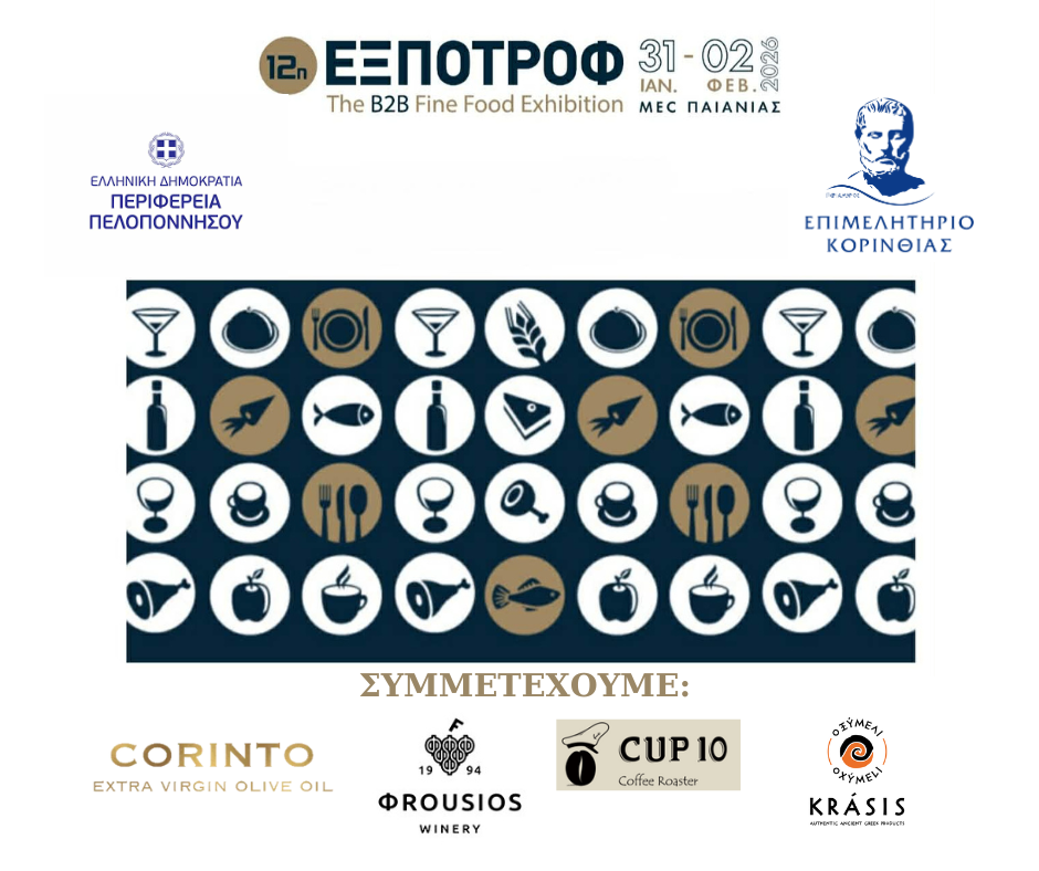 Στο περίπτερο της Περιφέρειας Πελοποννήσου οι επιχειρήσεις από την Κορινθία θα παρουσιάσουν τα εξαιρετικά προϊόντα τους. Οι επιχειρήσεις που θα εκπροσωπήσουν την Κορινθία είναι: